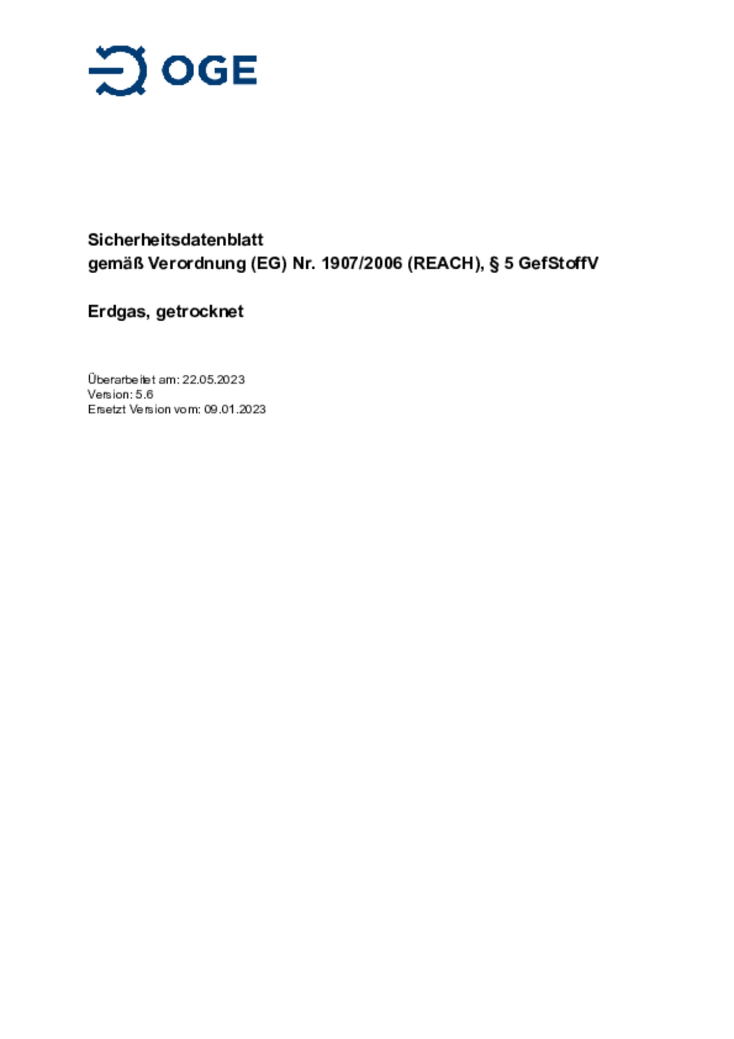 - Erstellung des Sicherheitsdatenblatts Erdgas