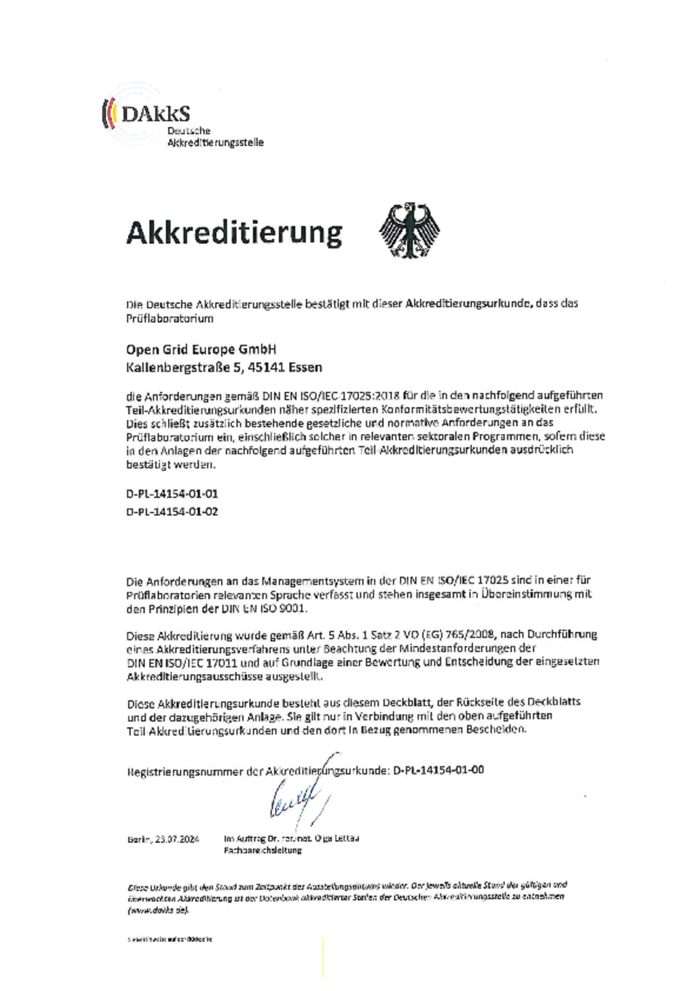 In unserem Labor analysieren wir Gase, Gasbegleitstoffe und gasspezifische Betriebsmittel. Dabei helfen uns leistungsstarke Messmethoden und unsere langjährigen Erfahrungen aus dem Betrieb unseres Transportnetzes und aus der Zusammenarbeit mit unseren Kunden. Unser Kompetenzcenter Gasqualität ist nach DIN EN ISO 9001 zertifiziert. Nach DIN EN ISO/IEC 17025 ist unser Prüflabor für die Erdgasanalytik akkreditiert.