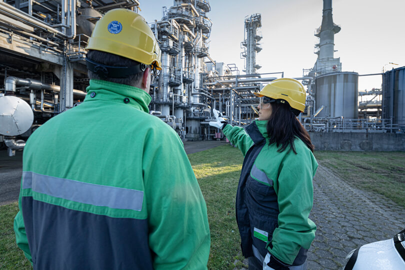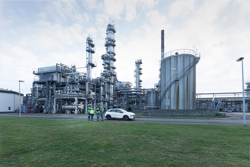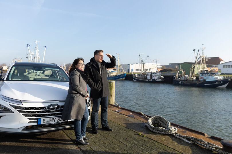 Am 4. Dezember 2019 wartet er auf dem OGE-Parkplatz in Essen auf seine Passagiere: ein Hyundai Nexo. Angetrieben von einer Brennstoffzelle, mit Strom aus Wasserstoff. Mahsa Siebold und Andreas Lehmann nähern sich dem Fahrzeug voller Neugier und Vorfreude. Die beiden sind bei OGE zuständig für Wasserstoffprojekte, die vom Gasnetzbetreiber gefördert und begleitet werden. Der ADAC lobt das „alltagstauglichste Brennstoffzellenfahrzeug auf dem Markt“. Mit nur 1,2 Kilogramm Wasserstoff soll der Nexo 540 Kilometer weit kommen. Von Essen bis nach Hemmingstedt in Schleswig-Holstein sind es rund 450 Kilometer. Das müsste das Fahrzeug eigentlich schaffen.