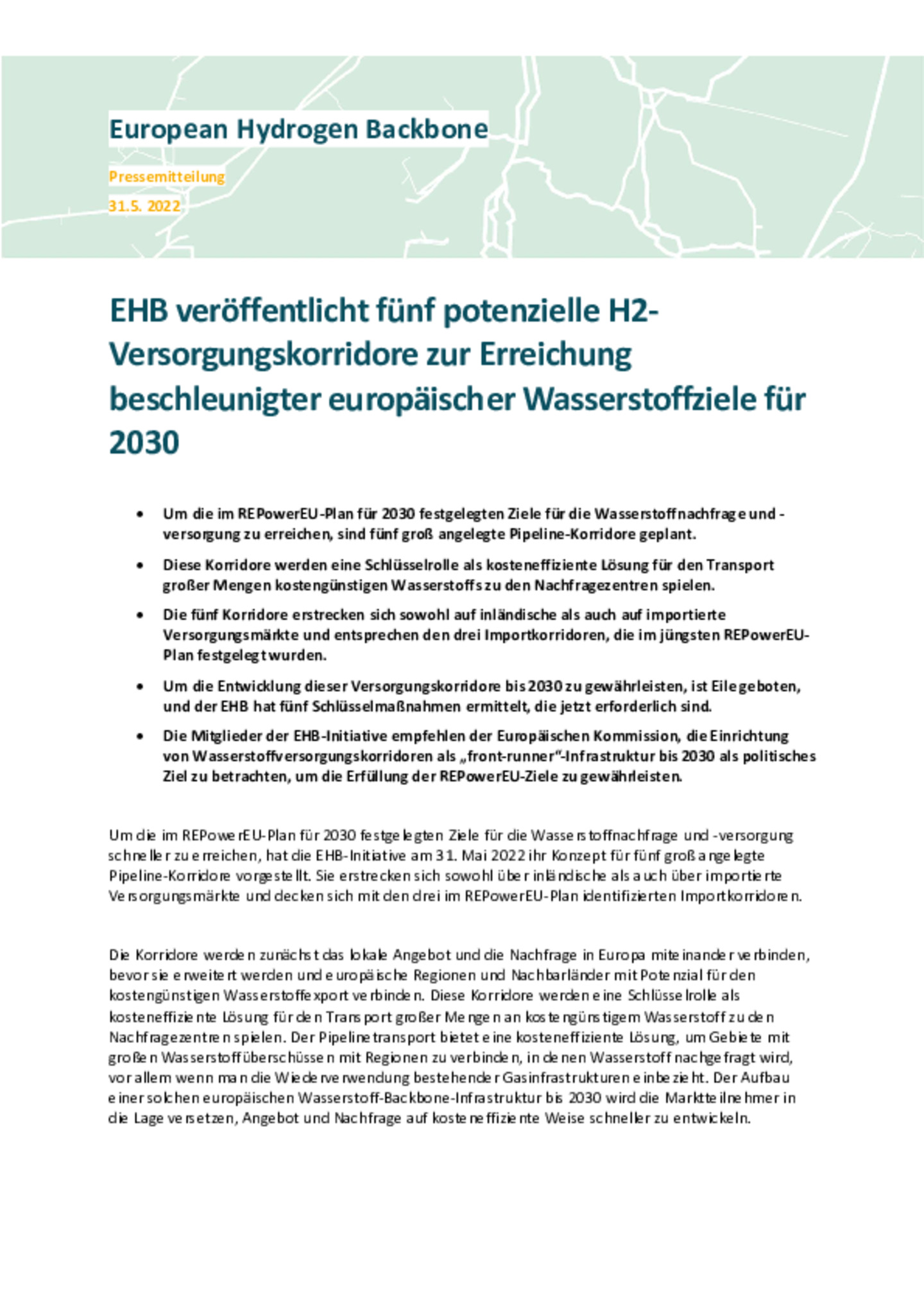 Die Initiative European Hydrogen Backbone (EHB) stellt eine vielversprechende Lösung vor, um die Einführung von Wasserstoff für mehr Energiesicherheit zu beschleunigen und die Ziele für erneuerbare …Energien zu erreichen.