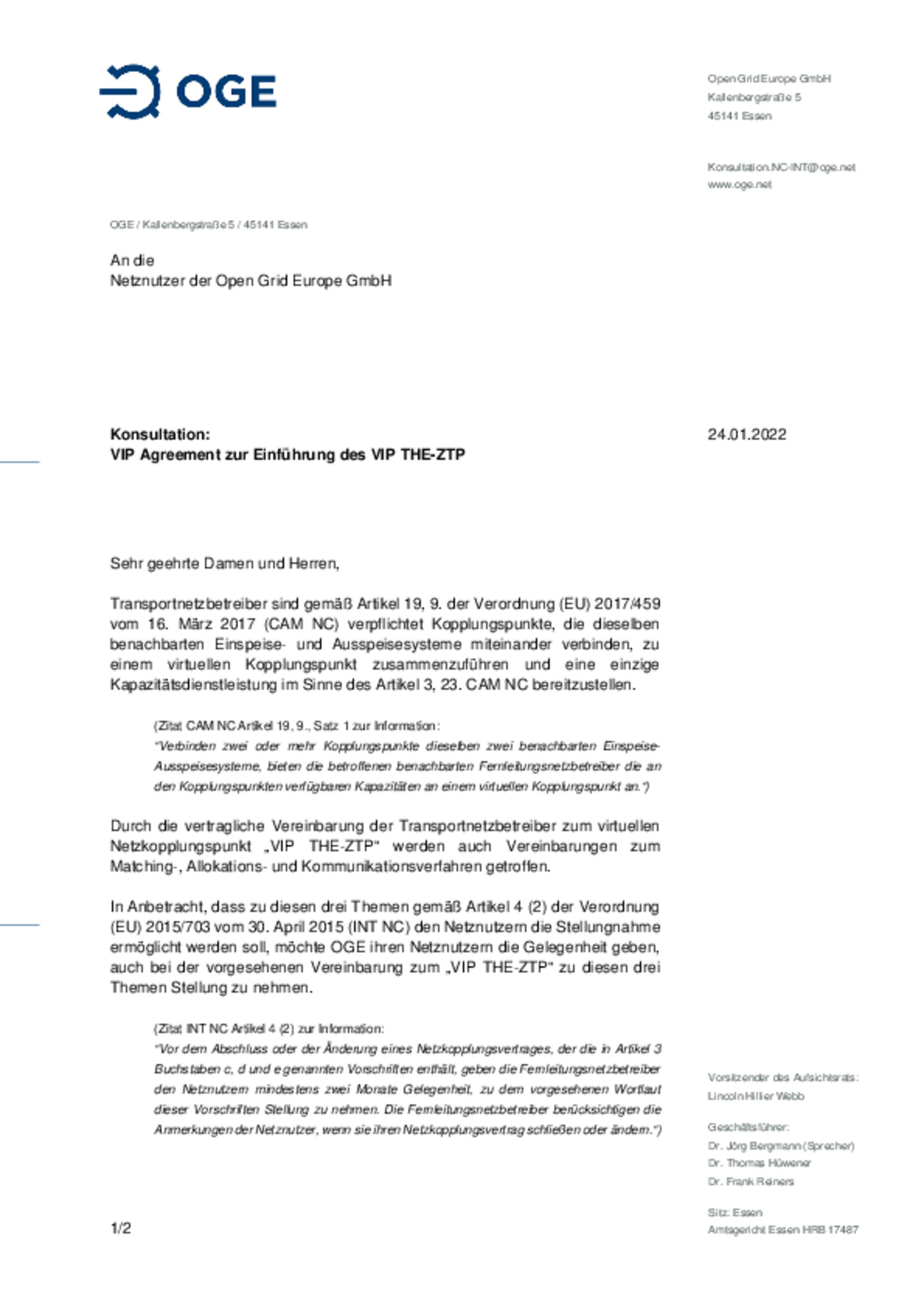 OGE hat am 30.11.2021 einen Antrag zur Einführung einer konkurrierenden Kapazitätsvermarktung für bedingt feste, frei zuordenbare Kapazitäten (bFZK) an ausgewählten Speicheranschlusspunkten bei der …Bundesnetzagentur (BNetzA) gestellt.