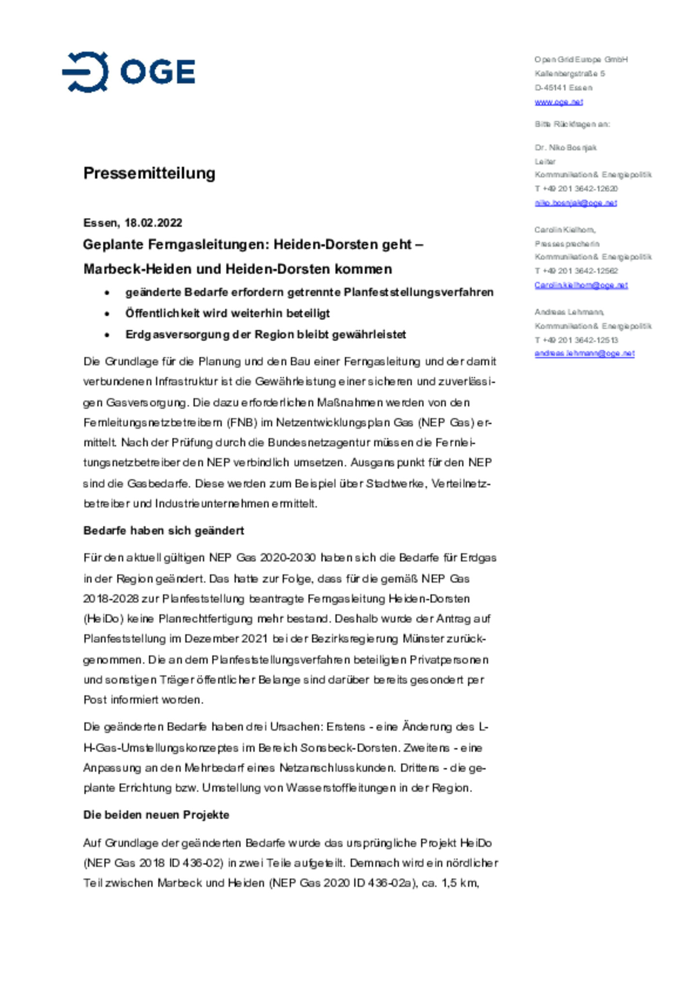 Die Open Grid Europe (OGE) plant den Bau einer Wasserstoffleitung zwischen Heek und Epe. Die Leitung soll die bereits bestehende und nun auf Wasserstoff umzustellende Leitung Bad Bentheim-Legden …mit dem Gasspeichergebiet in Epe verbinden.