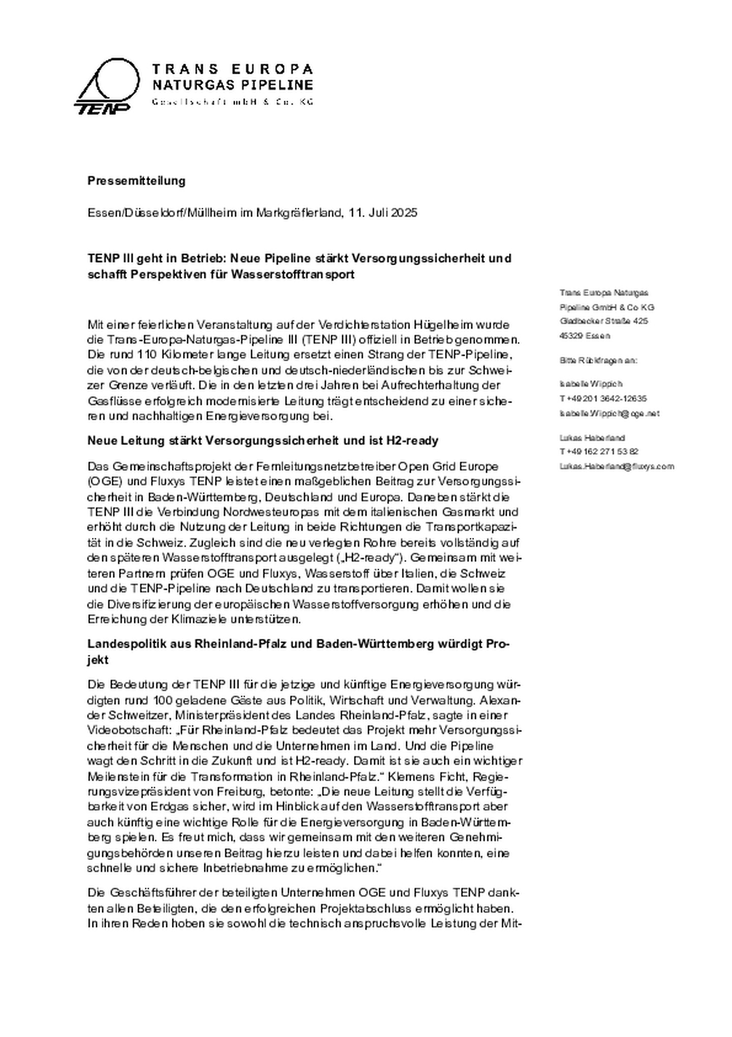 der Wasserstoffnetzbetreiber Nowega GmbH, Open Grid Europe GmbH und Thyssengas GmbH vom 23.06.2025