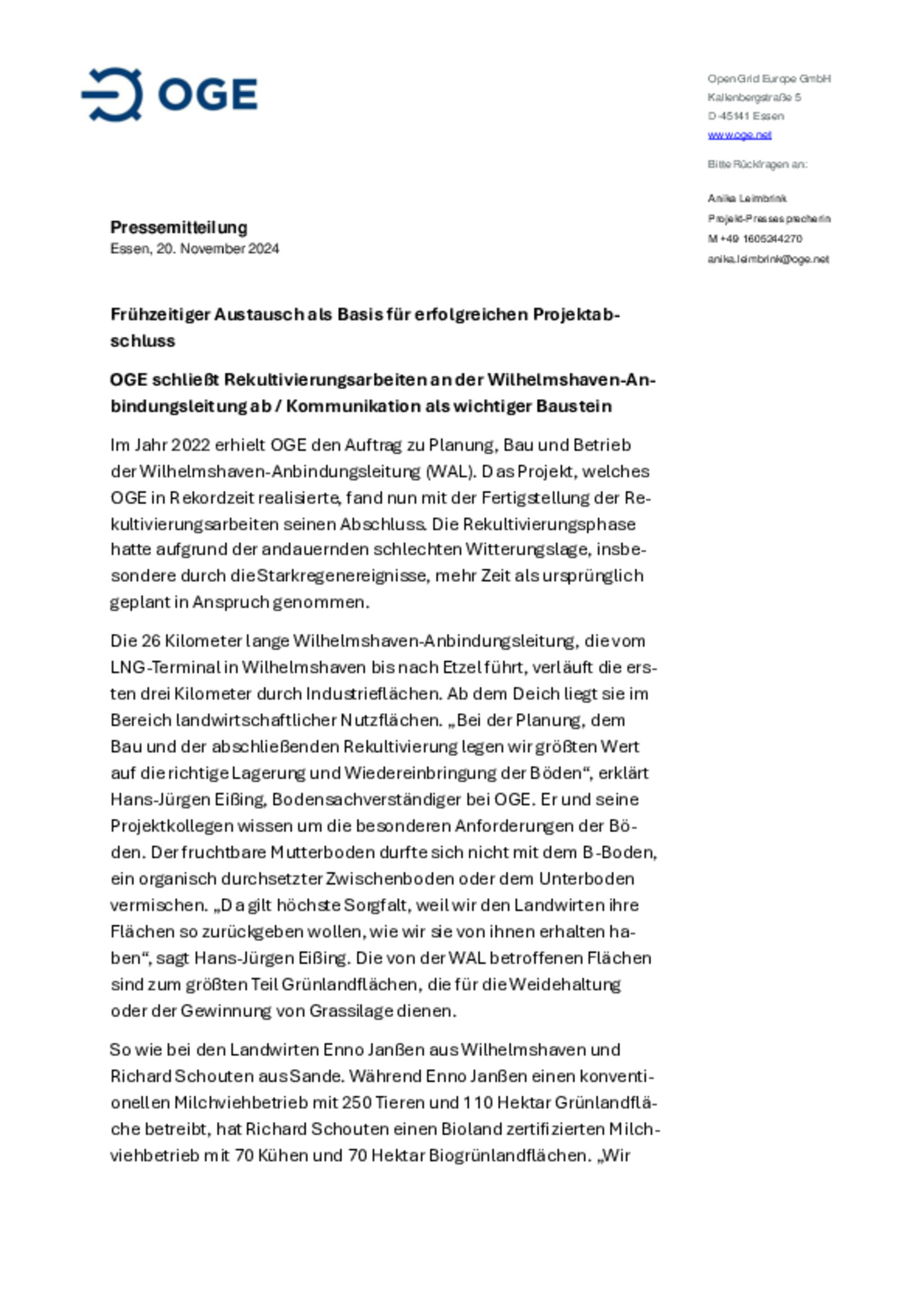 Die TMA umfassen neben den Netzanschlussbedingungen auch die verbindlichen Anforderungen sowie Ausführungsempfehlungen zur sicheren, effizienten und wirtschaftlichen Umsetzung technischer Regeln für …Errichtung, Änderung und Betrieb von Gas-Druckregel- und -Messanlagen am Gasnetz der Open Grid Europe GmbH. Stand 01.10.2024