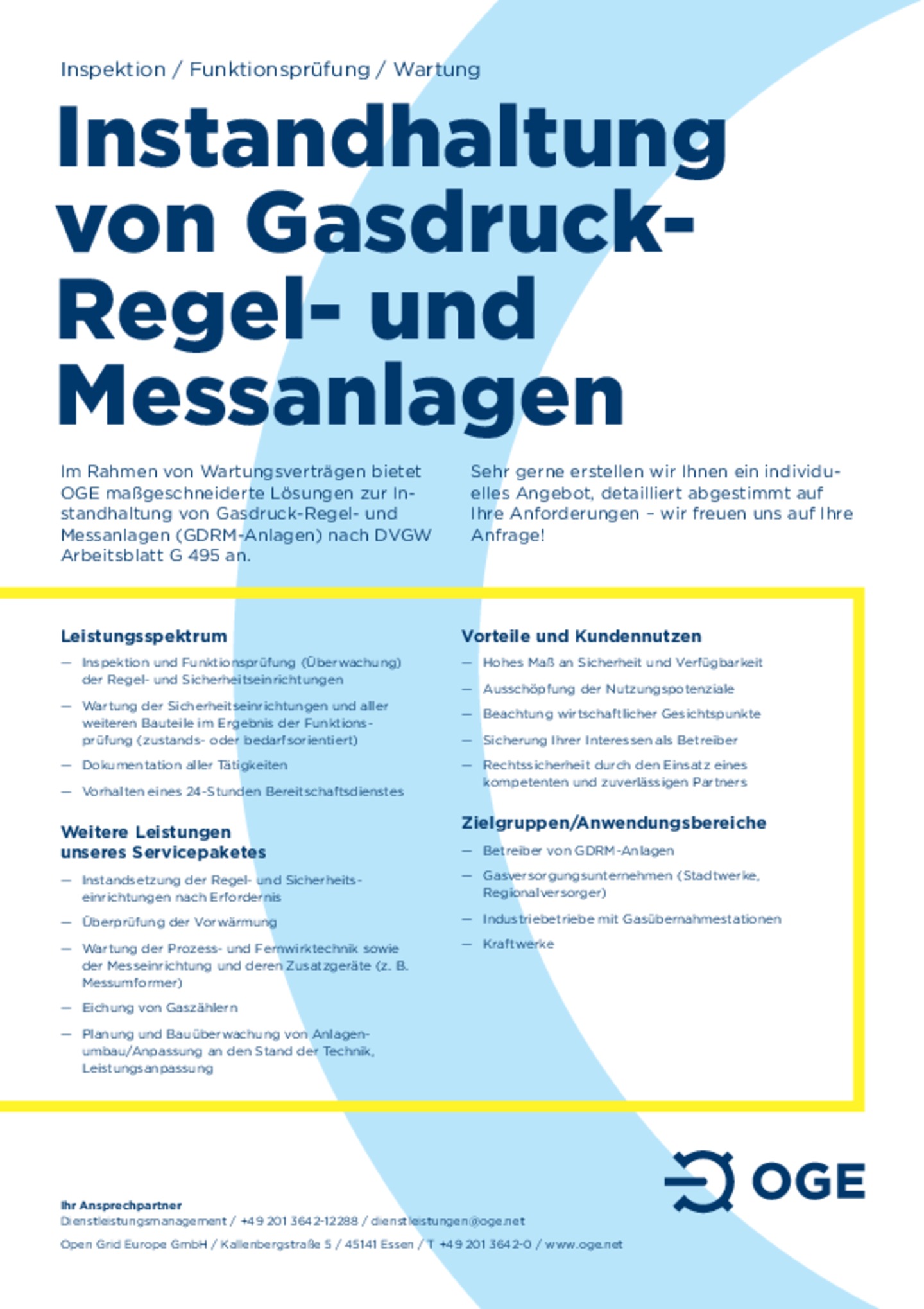 A service contract with OGE in accordance with the DVGW codes of practice governs the maintenance of: