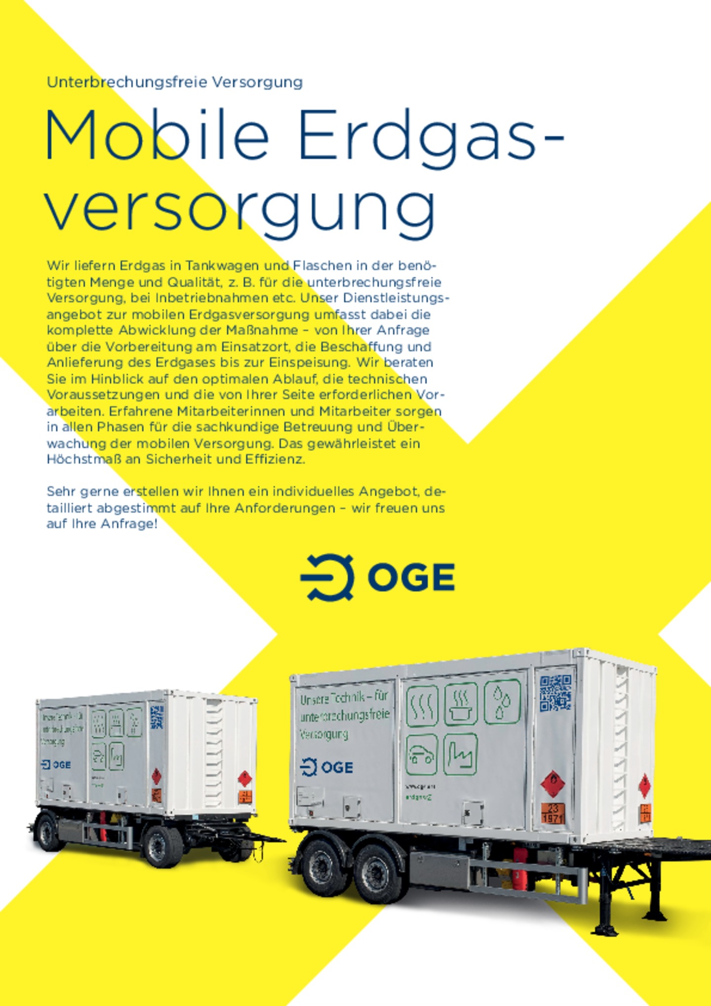 We at OGE are your port of call for all matters relating to mobile natural gas supplies: We can advise you on the optimal process, the technical prerequisites and the necessary up-front work. Our experienced employees monitor the mobile supply of gas with an expert eye.