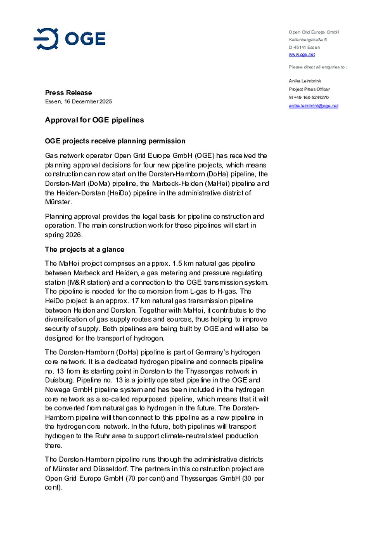 OGE Energy Policy Dialogue in Berlin: “Three pillars for the future: getting to net zero with natural gas, hydrogen and carbon management.”