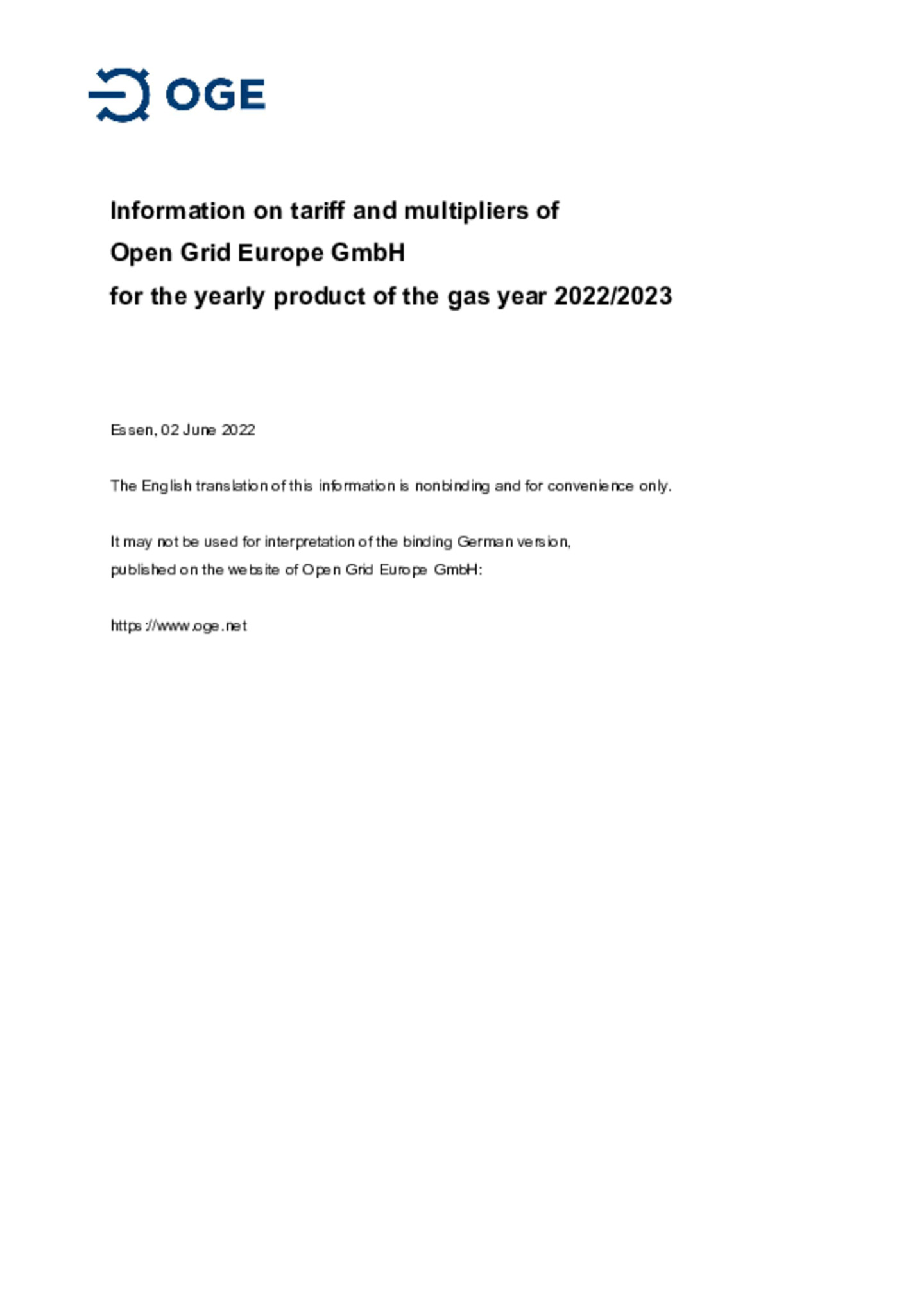 For the Trading Hub Europe (THE) market area the transmission system operators have determined the uniform tariff from 1 January 2023 on the basis of the Federal Network Agency’s (BNetzA) REGENT 2021… decision.