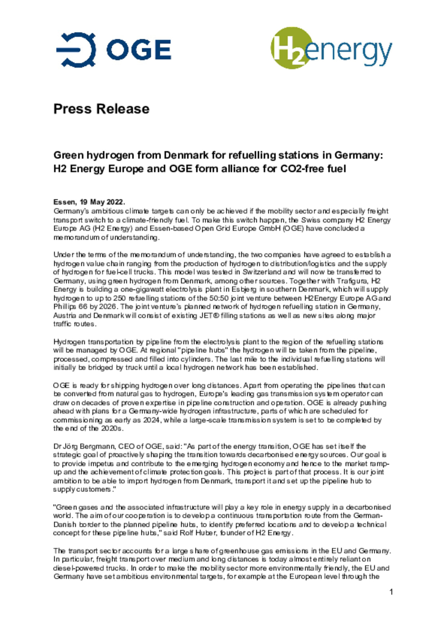 OGE, one of the leading European gas transmission system operators, is planning to build a CO₂ pipeline system. The project will focus on CO₂ emissions that cannot be avoided during production p…rocesses and on the reuse of CO₂ in a green circular system to import green hydrogen.
