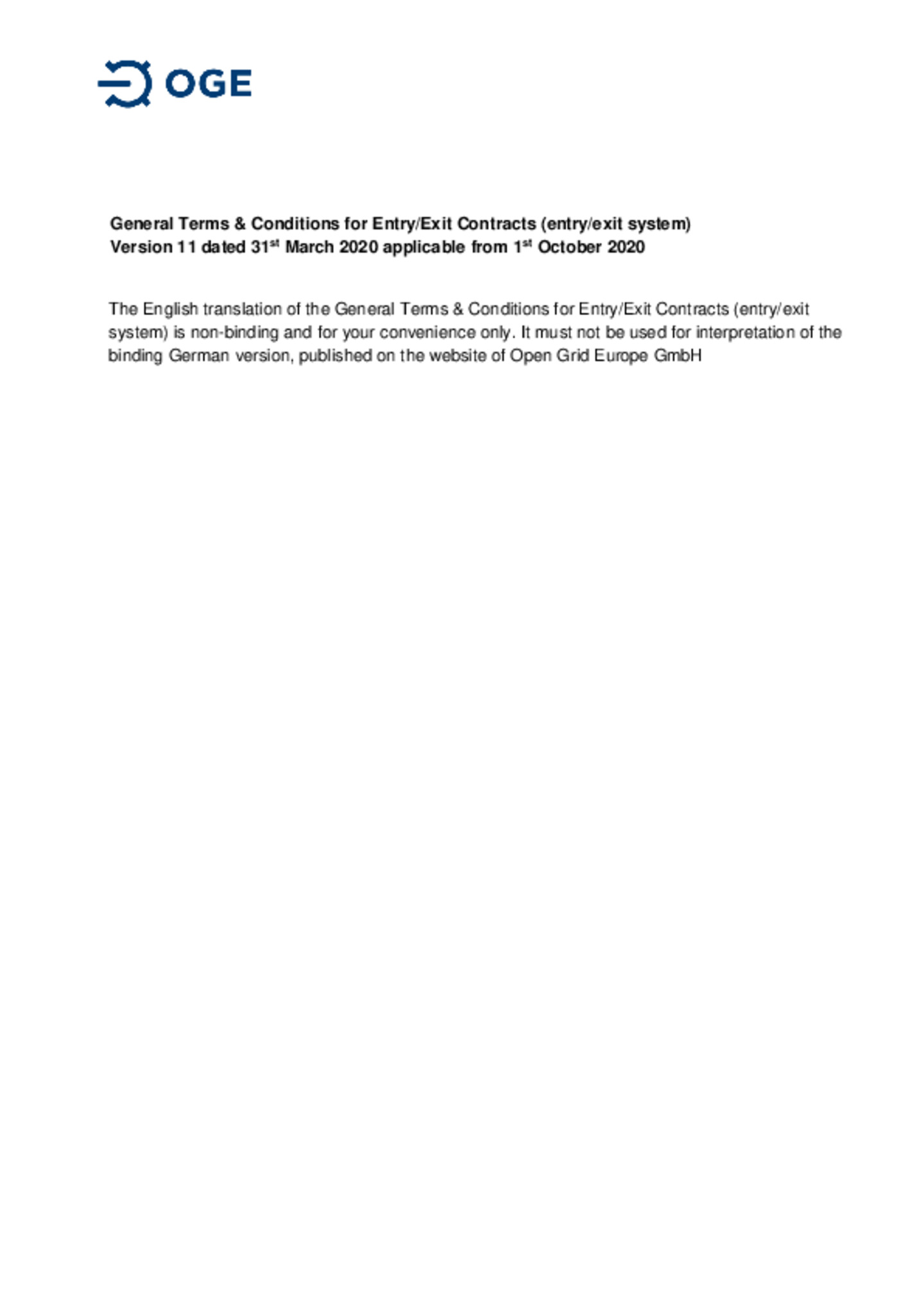 Price Sheet of Open Grid Europe GmbH for entry and exit contracts as well as internal orders in accordance with Cooperation Agreement XI in the market area NetConnect Germany GmbH & Co. KG respectively Trading Hub Europe GmbH