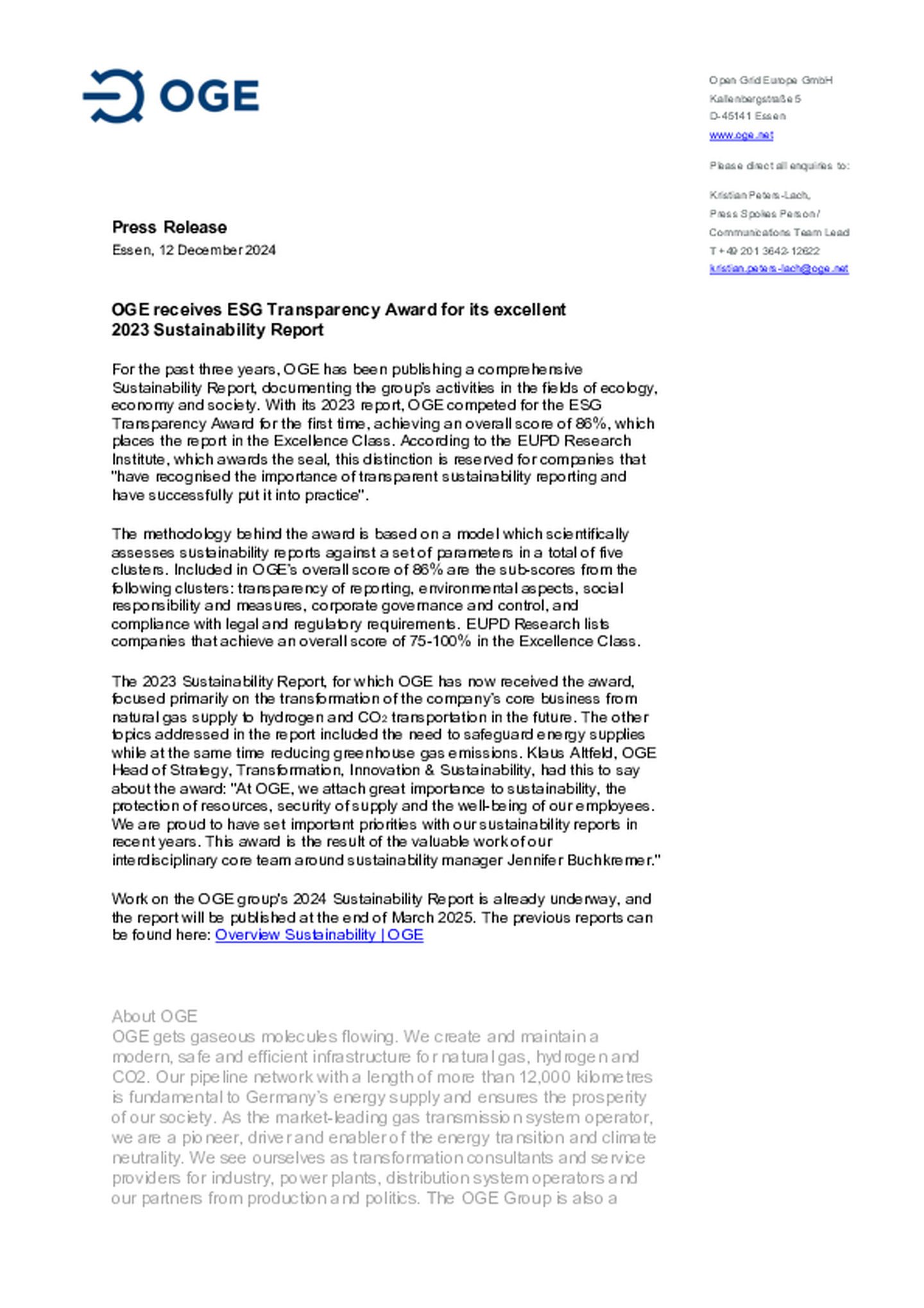The gas transmission system operator OGE and the municipal utility Stadtwerke Essen are working together on the future of hydrogen transportation to and within Essen. The partnership agreement signed… by both companies will enable Stadtwerke Essen and OGE to explore how hydrogen can be transported through the nationwide core network to businesses and consumers in Essen.