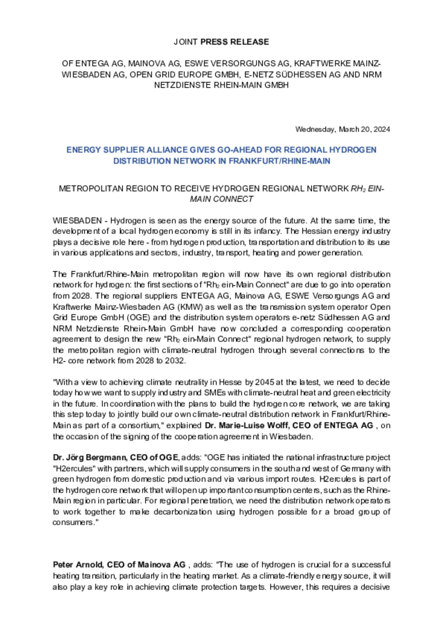 Contract signing partners for the Rh2ein-Main Connect regional hydrogen network in Wiesbaden