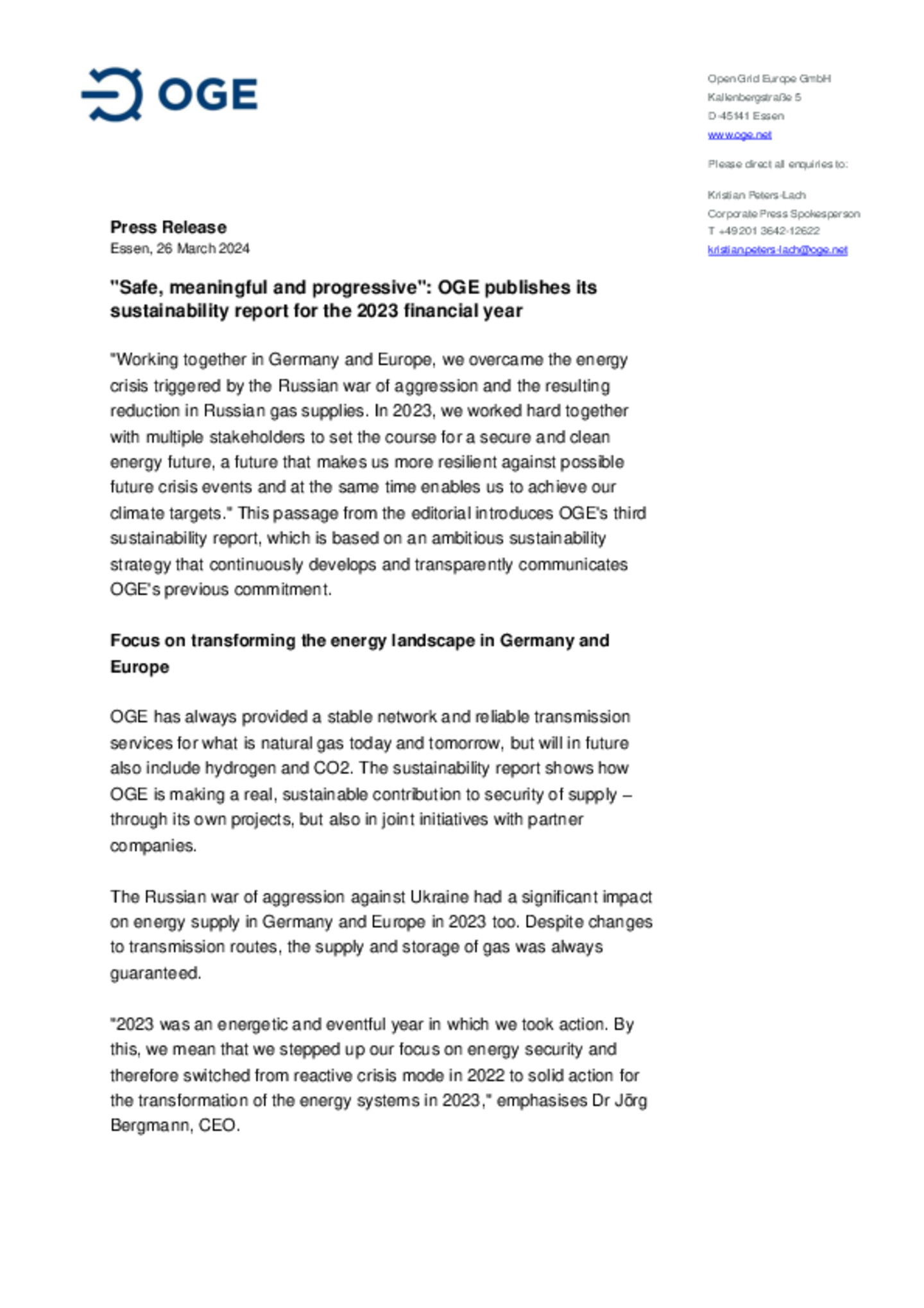OGE has successfully arranged the succession for the position of technical managing director: On July 1, 2024, Detlef Brüggemeyer will take over the technical department at OGE as a member of the …management board.