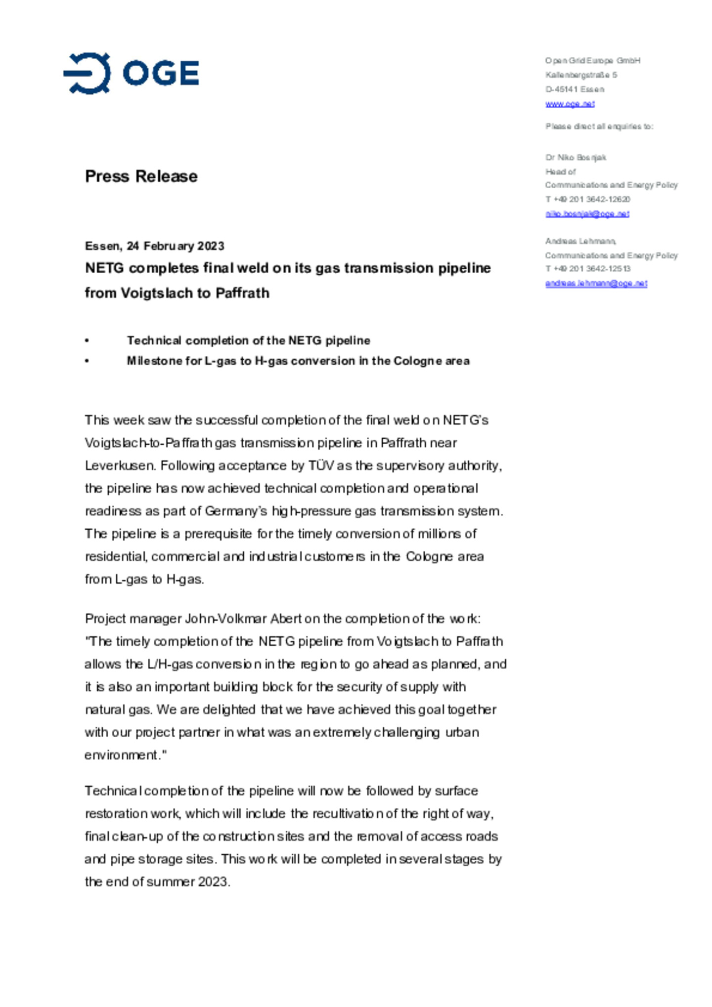 From left: Olaf Lies (Minister of Economics of Lower Saxony), Franz-Josef Kissing (Project Manager OGE), Thomas Hüwener (Member of the Management Board OGE), Morten Höegh (Shipping company Höegh), …Christian Lindner (Federal Minister of Finance), Siemtje Möller (Parliamentary State Secretary in the Federal Ministry of Defence), Niels Fenzl (Project Manager Uniper), Olaf Scholz (Federal Chancellor), Stephan Weil (Minister President of Lower Saxony), Holger Banik (Managing Director Niedersachsen Ports), Robert Habeck (Federal Minister of Economics), Christian Meyer (Minister of the Environment of Lower Saxony), Carsten Feist (Mayor of Wilhelmshaven)